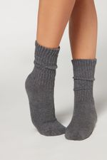 Black Friday OficialMeias FemininasMeias Curtas Caneladas Confortáveis - Cinza